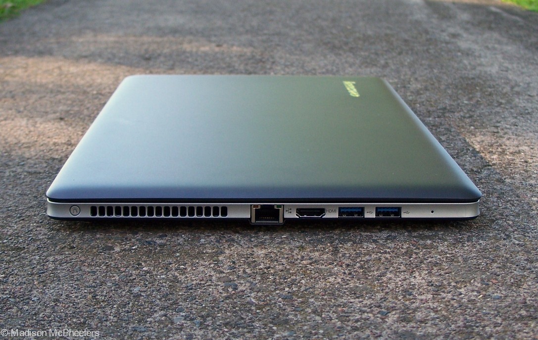 The premium feel continues in the U310’s construction. One corner of the keyboard deck flexes a little bit, but the rest of the laptop is completely solid.