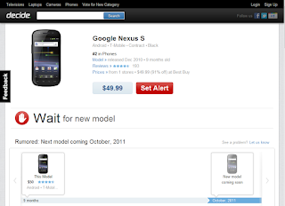 In my internet ramblings, I came across an interesting site. It's called Decide, and aims to do just that. It gives recommendations on whether to buy a tech product or wait for an upcoming price drop or an upcoming product refresh. Currently, they offer recommendations on televisions, laptops, cameras, and phones. It would be a great site to refer to whenever you are in the market for some new tech!