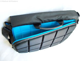 The laptop section in back has a distinctive look and excellent protection. The waffle padding on the outside is very, very tough. You should not have qualms about the safety of your laptop in this bag! :)