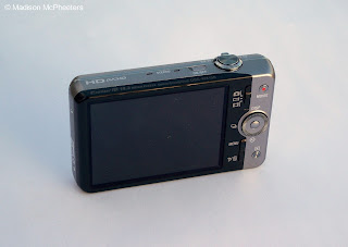 The bulk of the controls are on the back. Located from the top down and left to right are: the picture/panorama/movie switch, movie record button, the scroll wheel that doubles as display, burst shot, self timer, and flash controls, the menu button, the delete/Info button, and the review button. Whew! The screen displays photos with accurate colors and detail.